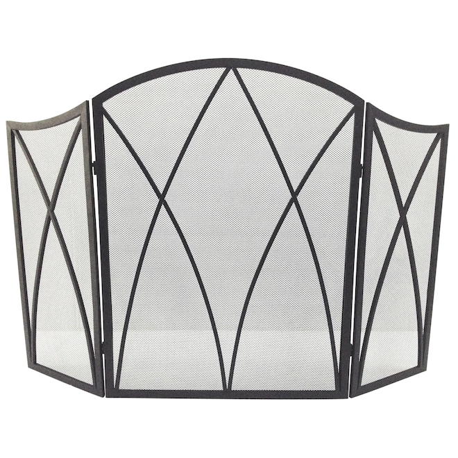 Gothic styling with a center arch, Style Selections’ 3 panel fire screen is made to keep your home safe and warm. This versatile fireplace screen features three steel mesh panels in a sturdy steel frame. The perfect fireplace screen to protect your hearth from flying embers. The hinged side panels enable you to position your screen at any angle to accommodate various sizes of fireplace openings. This fully assembled screen folds compactly for seasonal storage. Smooth lines and a powder coated finish in matte black make this the perfect fireplace screen for your home or cabin.