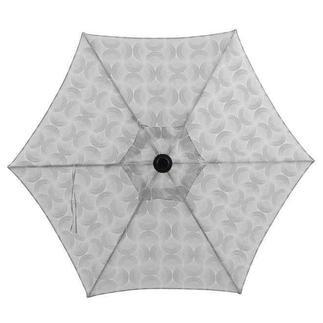 This Style Selections sunshade is made of rust-resistant powder-coated steel. It features a push-button tilt function to block the sun and an easy-to-use hand crank.