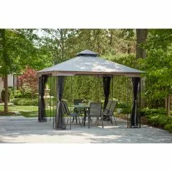 Style Selections offers a nice traditional outdoor fireplace built in sturdy steel with a side door to add wood pieces or logs. The spark-guard mesh lets you observe the fire from all sides of the fireplace, meaning that you can enjoy summer evenings with family or friends.