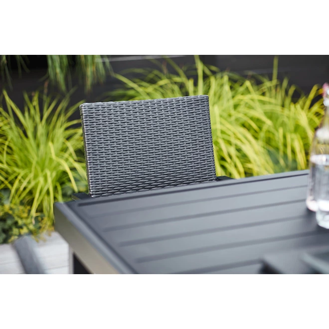 A great way to enhance your deck or patio, this outdoor dining chair features a modern, square design that’s sure to blend in with your existing exterior decor. Sophisticated yet simple, this model is made of sturdy steel with a black powder-coated finish that creates a stylish look you’ll love. Its seat is made of handwoven polyethylene resin rattan, making this patio chair attractive in any setting. What’s more, this outdoor chair is stackable and easy to store. This chair is ideal for relaxing and is backed by a 1-year warranty to give you complete peace of mind.